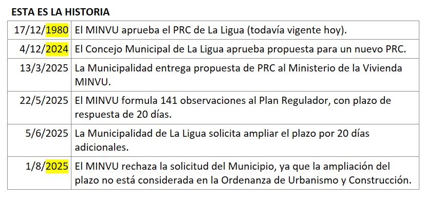 RECHAZÓ EL NUEVO PLAN REGULADOR DE LA LIGUA (PRC), debido a que LA MUNICIPALIDAD NO RESPONDIÓ A TIEMPO LAS 141 OBSERVACIONES REALIZADAS AL TEXTO.